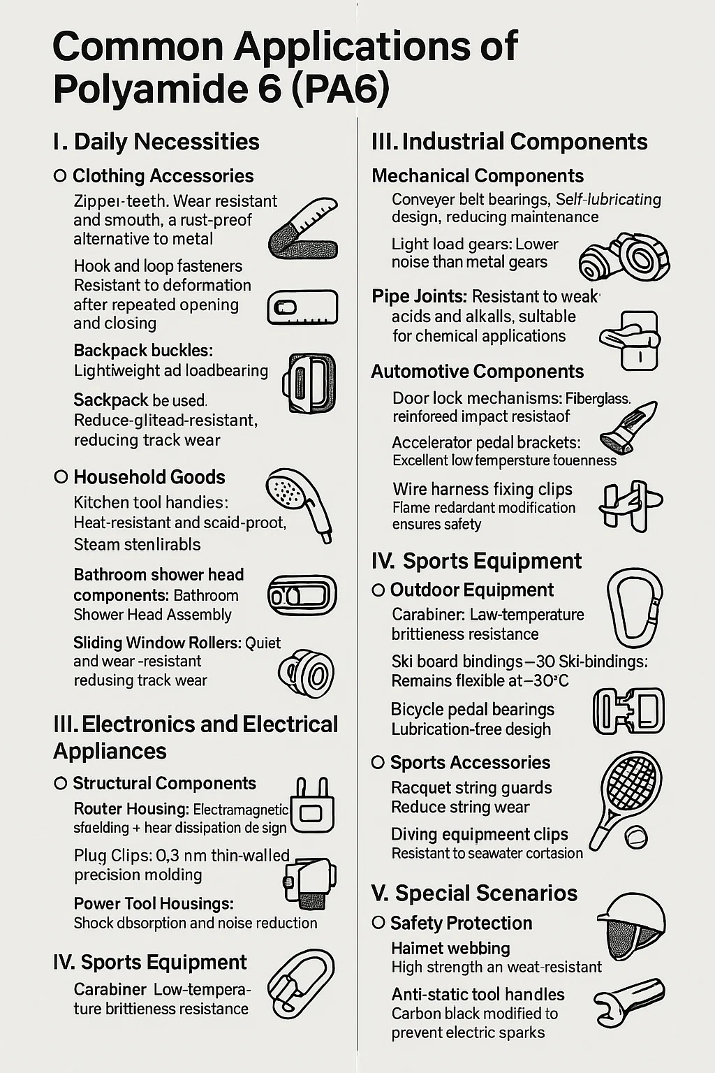 Aşağıda yaygın uygulamalara bir giriş yer almaktadır. poliamid 6 (PA6):