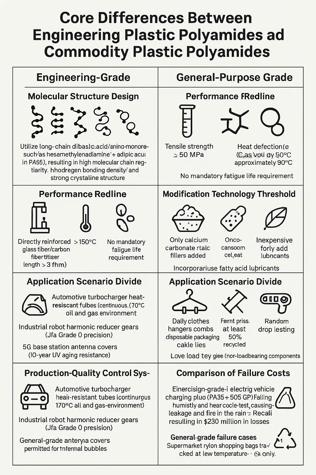 Arasındaki temel farklılıklar Mühendislik plastik poliamidler ve emtia plastik poliamidler